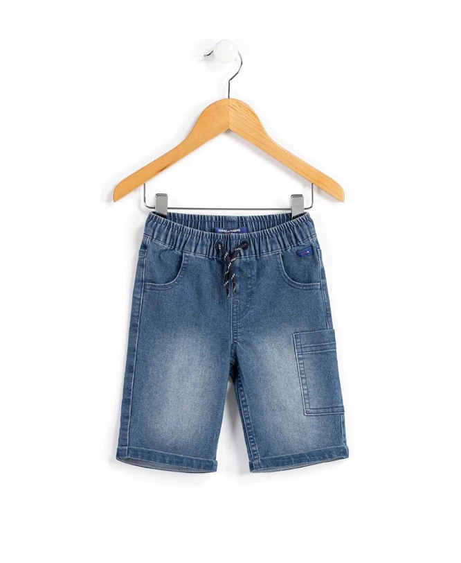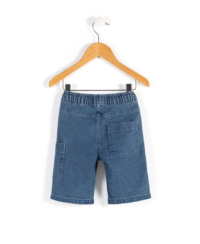 • Un tissu sélectionné pour sa douceur et sa durabilité. Bermuda en jean Couleur unie avec effet blanchi sur les cuisses Apport d’elasthanne Taille élastiquée avec cordon de serrage fantaisie Fausse braguette 2 poches devant 1 poche côté 1 poche dos Revers bas de jambes Vignette tissée en entrée de pauche gauche