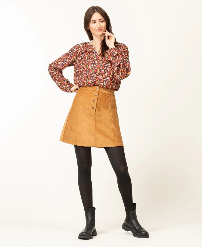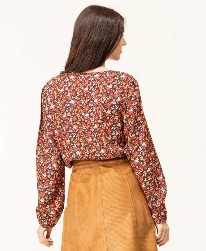 Chemise en viscose aux couleurs chaudes automnales et à l’imprimé exclusif floral. Avec son col d’inspiraration marine et ses manches longues, CAROX ravive votre look tout en féminité.