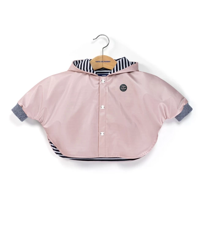 Bébé aussi a droit à son ciré Terre de Marins : en mode cape, plus pratique à enfiler pour bébé, Bébé sera protégée de la pluie avec PECOULI !