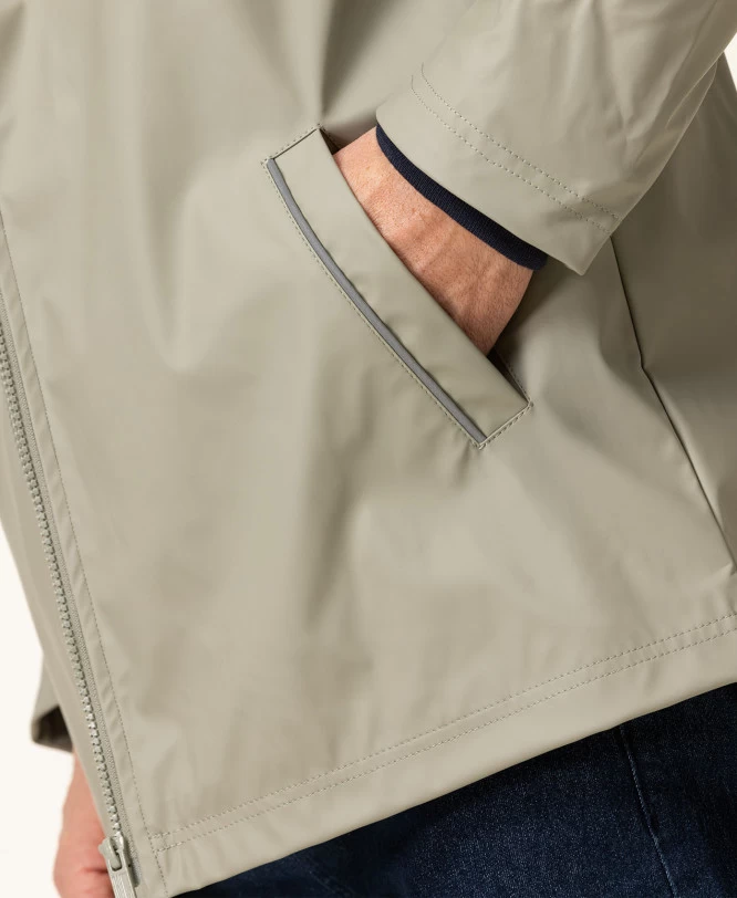 - Finition bas manche bord côtes pour éviter que l’eau et le vent ne remontent dans les manches