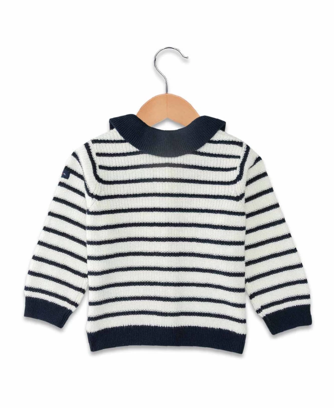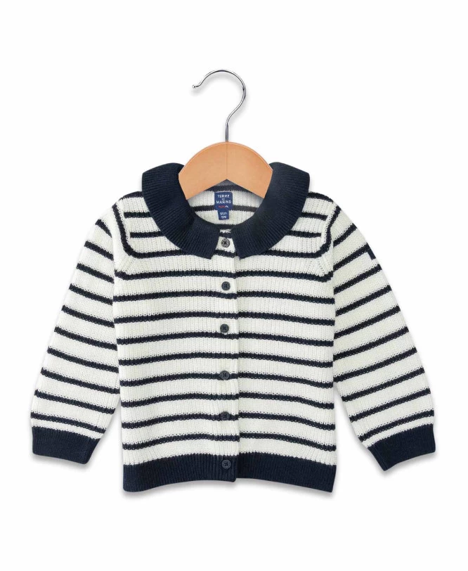Une pièce intemporelle et essentielle pour bébé qui va l’accompagner à la mi saison pour sortir ou comme top rayé à associer avec un pantalon, une jupe ou une robe cet hiver.