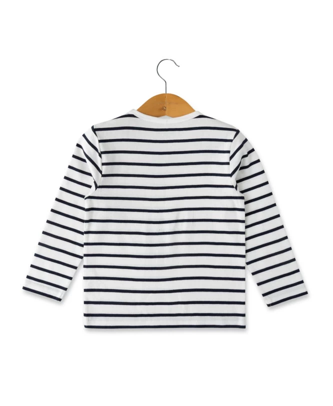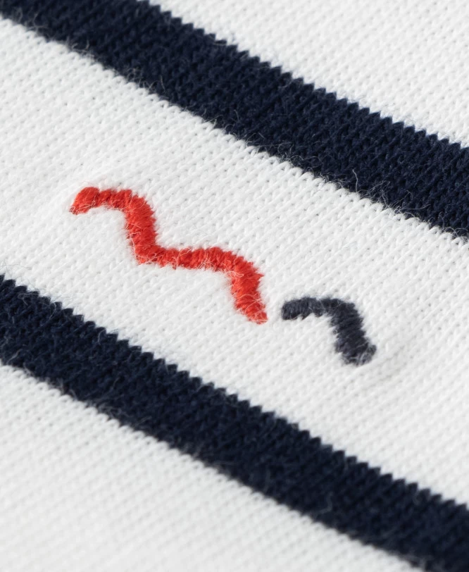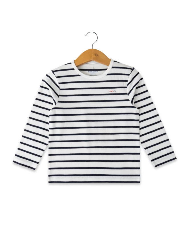 Ses rayures bicolores et son col contrasté offrent un look classique, tandis que sa fabrication éco-responsable reflète nos valeurs de durabilité