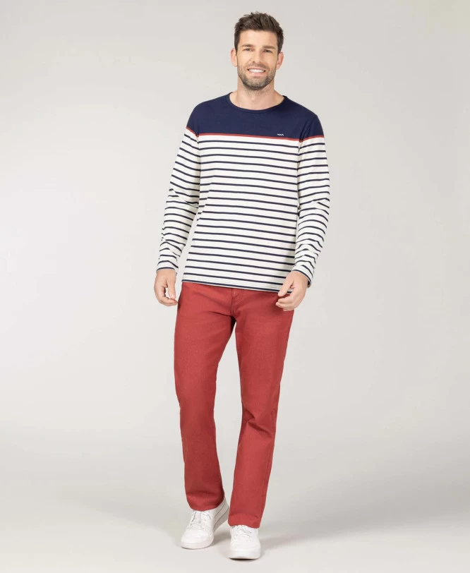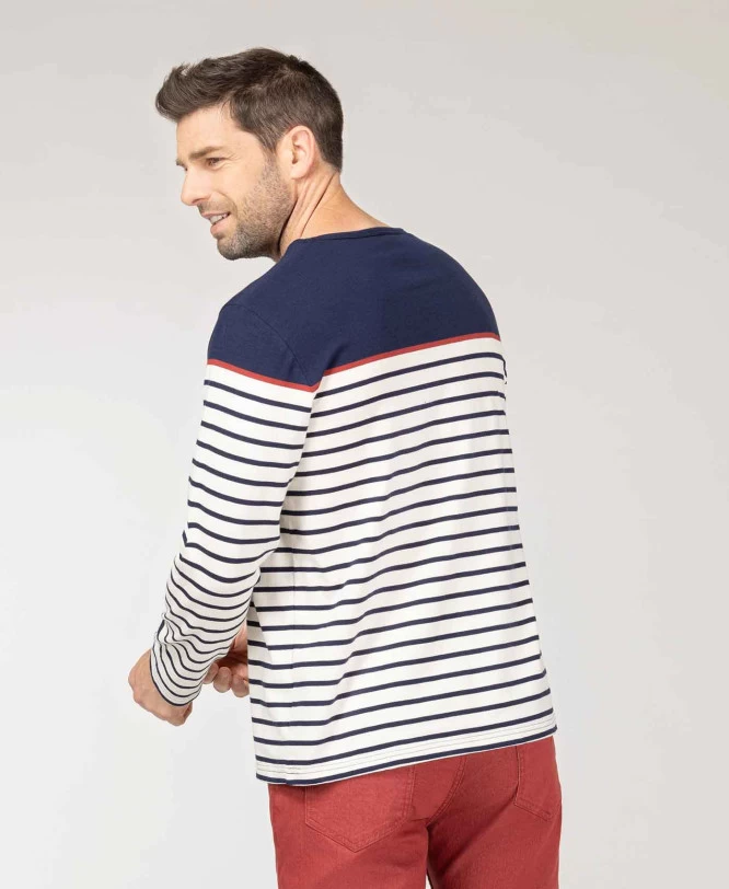 Pour célébrer nos 30 ans, la marinière ML fond grège rayé indigo Maritage incarne à la perfection notre esprit marin !