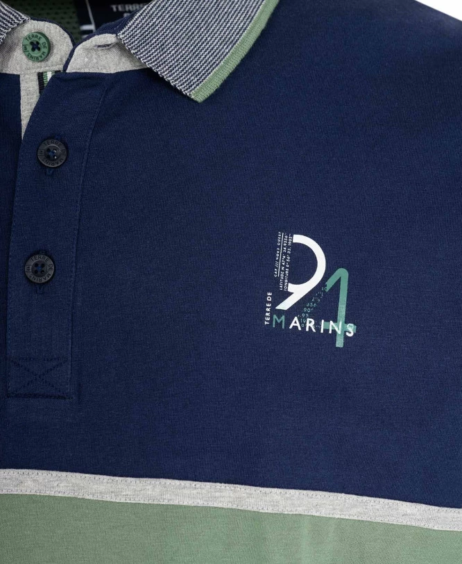 Polo manches courtes bleu/vert pour homme. Colo polo. Visuel exclusif sur le torse côté coeur et logo sur la manche gauche. Jersey 100% coton 200 gsm. Un polo manches longues à l’allure sportive pour un look détente et confortable.