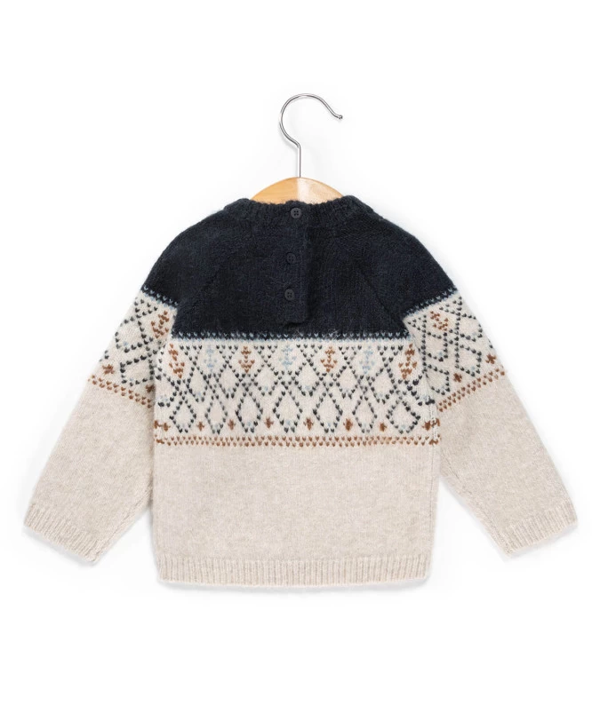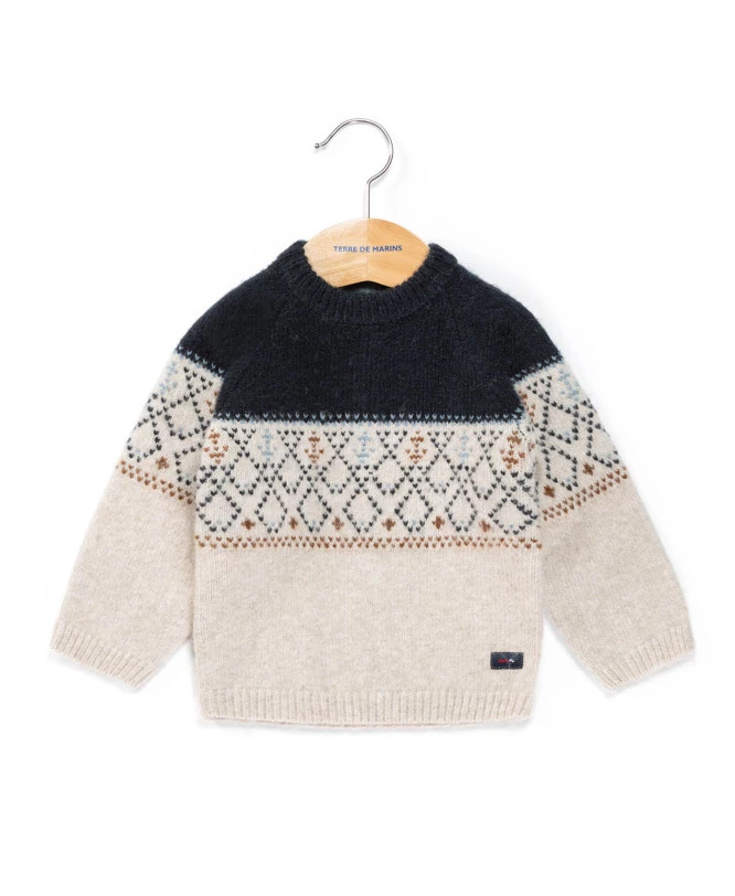 Un pull de Noël au style jacquard, inspiration marine, qui vous tiendra chaud tout l’hiver.