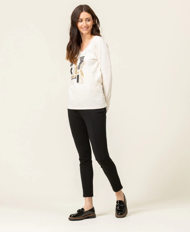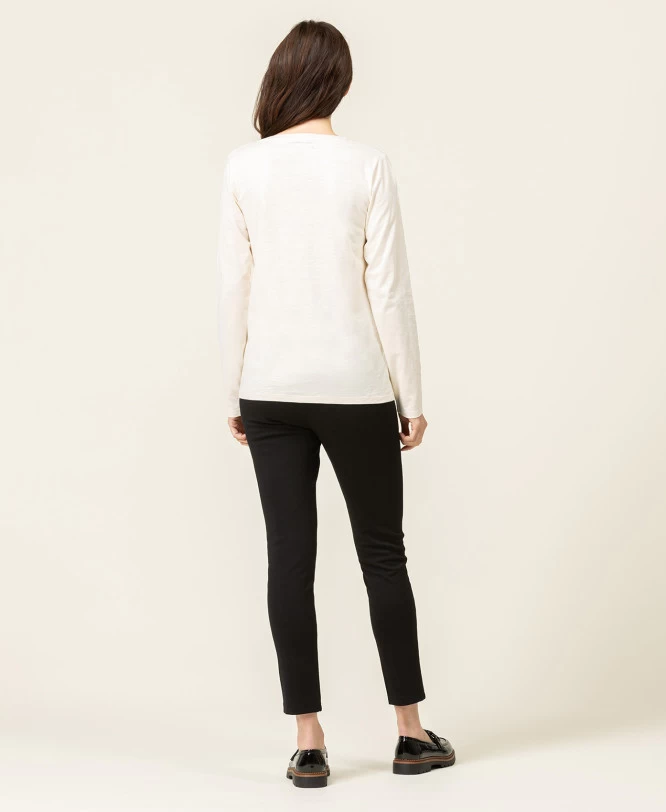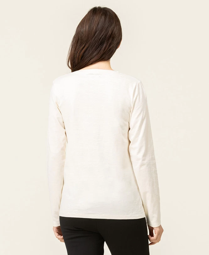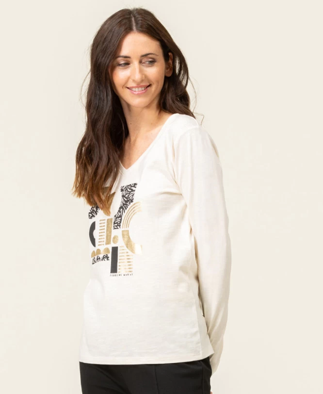 Maxi visuel pour le t-shirt TIGRINE. Un petit top manches longues à la coupe et aux couleurs élégantes qui s’intègre parfaitement dans votre tenue casual-chic.