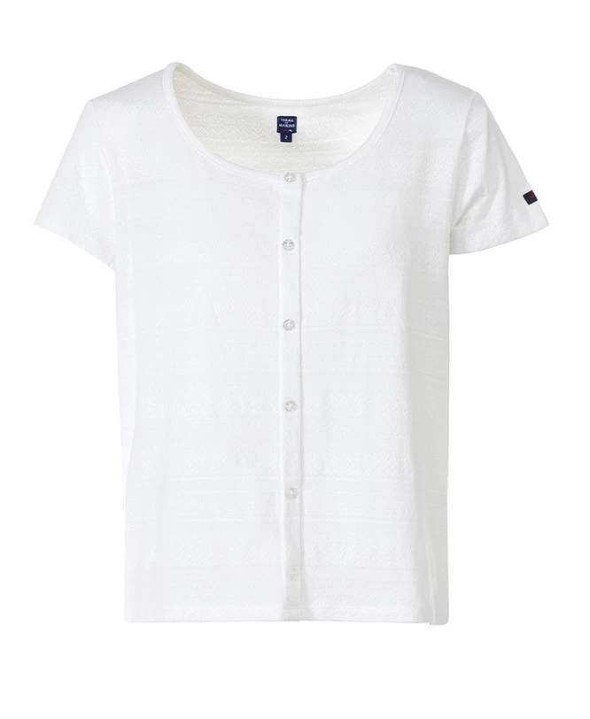 De jolis petits boutons sur toute la longueur de ADIS viennent maximiser le style de ce t-shirt que l’on combinera avec une petite jupe ou un pantacourt cet été.